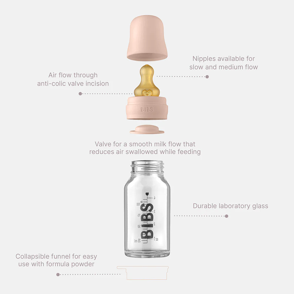 BIBS Baby Glass Bottle Complete Set 110ml dusky lilac