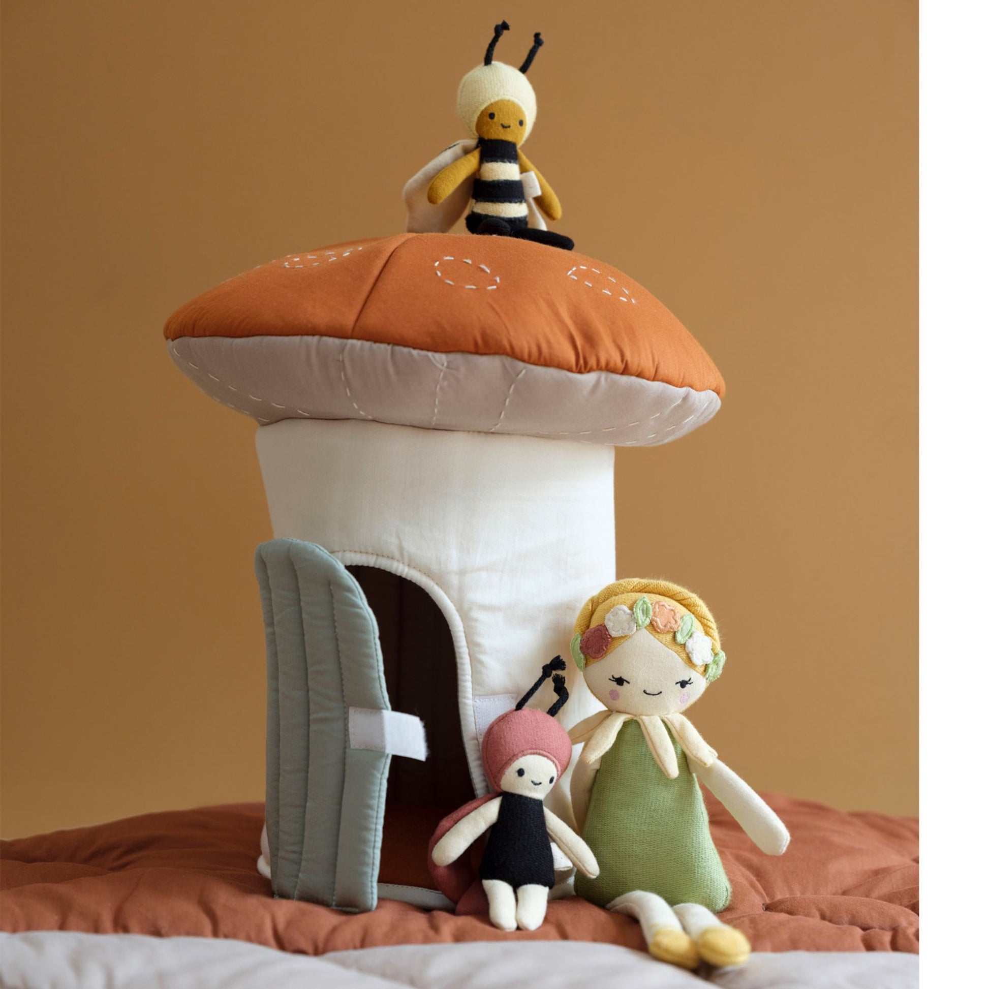 Rotes Puppenhaus von Fabelab. Das Puppenhaus hat ein weich gepolstertes Design.