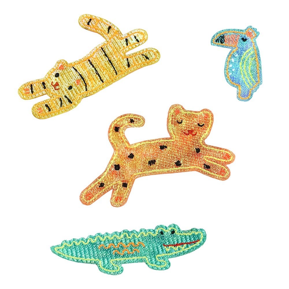 Größen: Jaguar 64 mm b x 45 mm h, Tiger 61 mm b x 36 mm h, Croco 64 mm b x 29 mm h, Toucan 25 mm b x 37 mm h