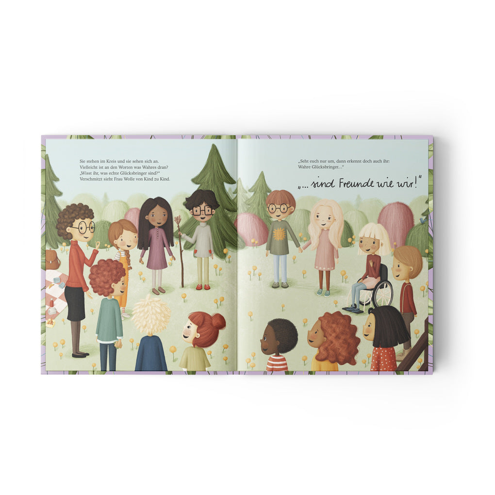 Kein Ding ist so klein, dass es nicht etwas Großes bewirken kann. Besonders dann, wenn die Kinder der Wunderbare-Wesen-Klasse ihre Finger im Spiel haben. So wie der kleine Ring, den Ella am Wandertag auf dem Schulhof findet. Ob er wohl Glück bringt? Das könnte sie gut gebrauchen, denn sie hat ihre Brotdose zu Hause vergessen. Und siehe da, es klappt! Als ihr Freund Tom ebenfalls Hilfe braucht, gibt sie den Ring gerne weiter. So wandert er von Kind zu Kind und verbreitet immer mehr Glück. Doch dann erkennen die Kinder, dass es nicht der Ring ist, der Glück bringt, sondern die Liebe und Freundschaft, die sie miteinander teilen. Ein herzerwärmendes Buch für große und kleine Glücksbringer.