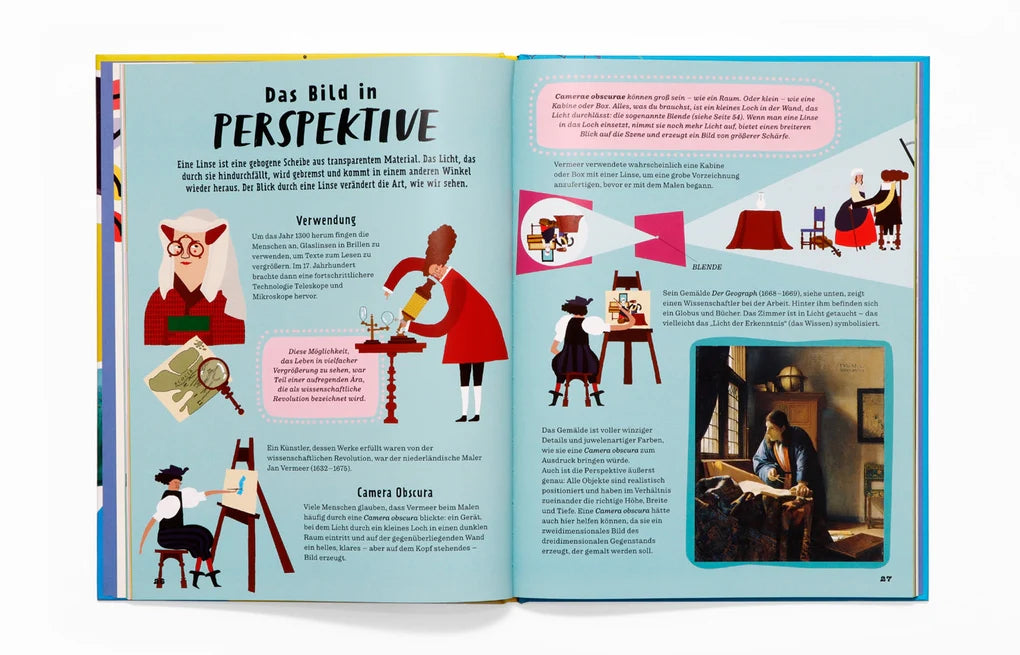 Kunst und Wissenschaft gingen schon immer Hand in Hand. Beide verlangen viel Kreativität und Neugier, beide fordern uns dazu auf, die fantastische Welt um uns herum zu erforschen. Dieses Buch ermuntert seine Leser*innen, einige der wichtigsten Entdeckungen der Kunstgeschichte selbst zum Leben zu erwecken! Pro Kapitel werden auf einer Doppelseite erst ein wissenschaftliches Phänomen, seine Umsetzung in der Kunst und der/die Künstler*in vorgestellt, auf der nächsten Doppelseite folgen dann klare Schritt-für-Schritt-Anleitungen für eigene Projekte. Eine faszinierende Reise durch Kunst- und Wissenschaftsgeschichte!