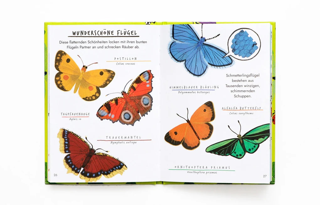 Nina Chakrabarti stellt euch in diesem taschenformatigen Naturführer die faszinierende Welt der Insekten vor: Kinder erfahren so einiges über Bienenstöcke, Ameisenkolonien und Metamorphosen und lernen außerdem, wie sie ein Insektenhotel bauen können oder was der Unterschied zwischen Tarnung und der sogenannten Mimikry ist. Mit farbenfrohen Illustrationen, verblüffenden Fakten und tollen Vorschlägen zu Outdoor-Aktivitäten wird dieses Büchlein zum perfekten Begleiter für angehende Insektenforscher*innen!