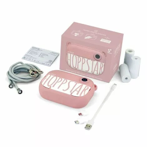 - Hoppstar Artist Kamera, 16GB Speicherkarte, Umhängeband, USB Ladekabel, 1x OTG Adapter Micro USB, 1x OTG Adapter Type C, 3 extra Papierrollen, Bedienungsanleitung